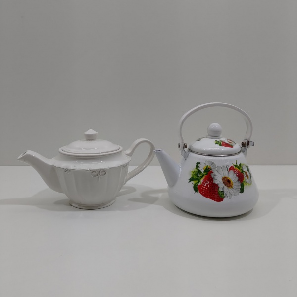 • Lote com 2 Bules de Chá, 1 em Cerâmica, Sem marca aparente e 1 Esmaltado em Metal, Sem marca aparente. Medidas do Maior: Altura: 16 cm, Largura: 19 cm, Comprimento: 16 cm, Peso Total: 1000 g.