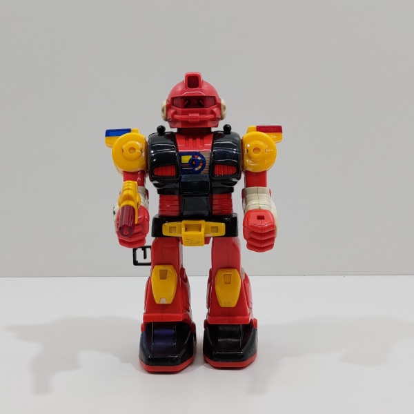 • Brinquedo Robô Hap-p-Kid, Não testado o funcionamento. Medidas: Altura: 25 cm, Largura: 14 cm, Comprimento: 15,5 cm, Peso: 460 g.