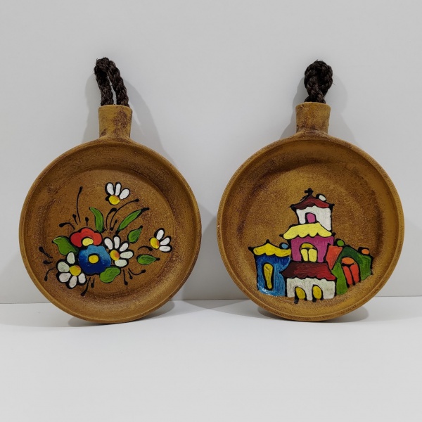 • Par de Pratos Enfeite de Parede em Cerâmica. Medidas de Um: Altura: 30 cm, Largura: 4 cm, Comprimento: 20 cm, Peso: 960 g.