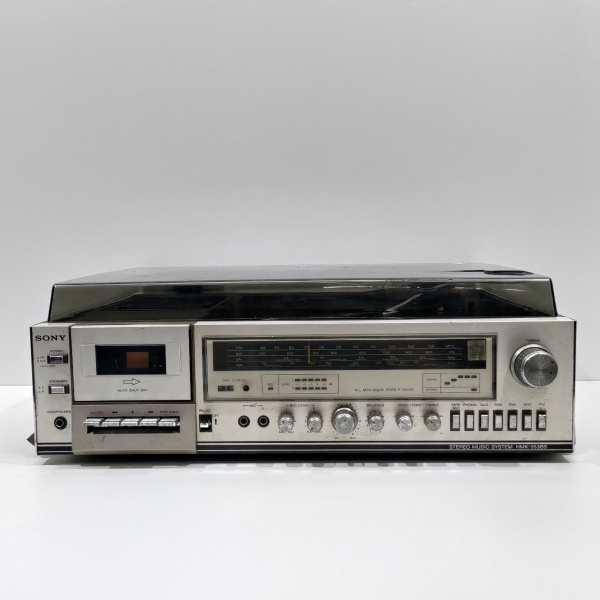 • Aparelho de Som Toca-Discos, Rádio AM/FM e Toca-Fitas, Marca Sony, Modelo HMK-353 BS, Com a Tampa Rachada E Desgastes na parte de Baixo, Não testado o funcionamento. Medidas: Altura: 19 cm, Largura: 42,5 cm, Comprimento: 60 cm, Peso: 10960 g.