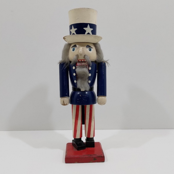 • Boneco Quebra Nozes de Madeira, Com Detalhes na Pintura e um Quebrado no Chapéu (Necessita Restauro). Medidas: Altura: 35 cm, Largura: 8 cm, Comprimento: 11 cm, Peso: 670 g.