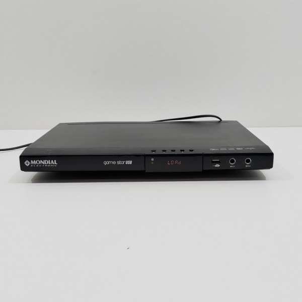 • DVD Player, Marca Mondial, Modelo D-03, Ligando, mas não testado o funcionamento. Medidas: Altura: 4,5 cm, Largura: 24,5 cm, Comprimento: 36 cm, Peso: 1270 g.